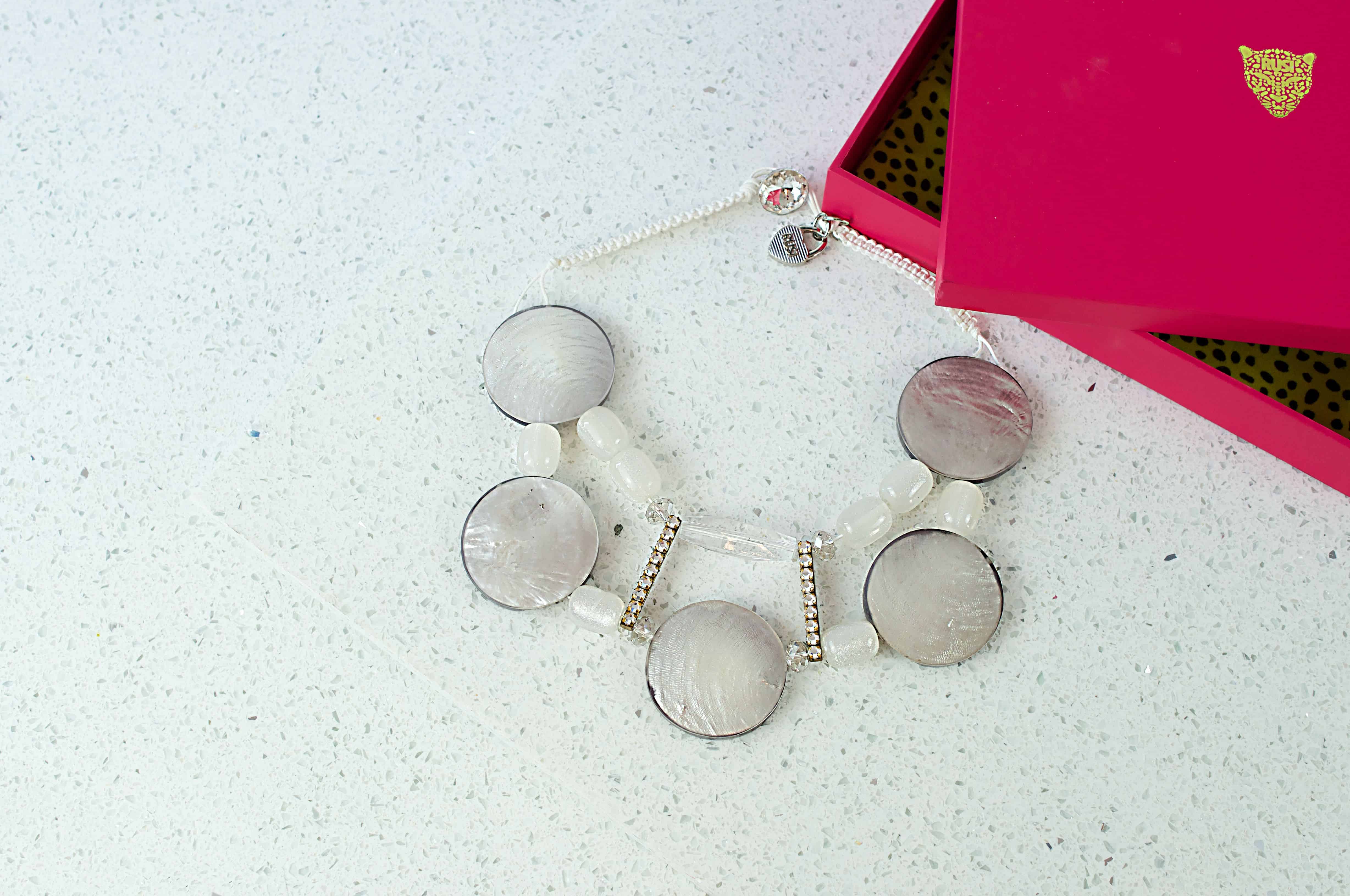 RusiDesigns Statement necklace in White mother of Pearl and Crystals.